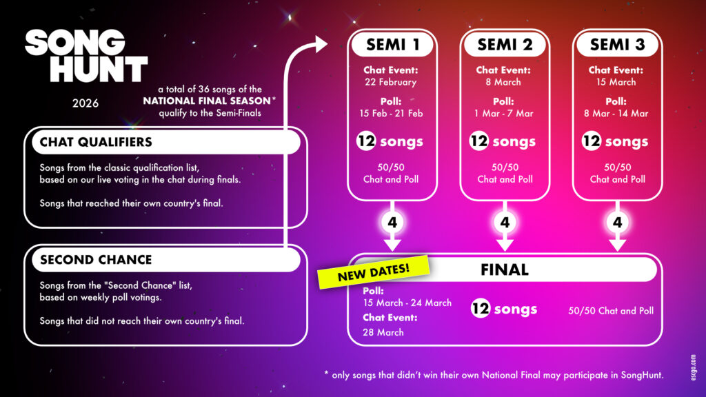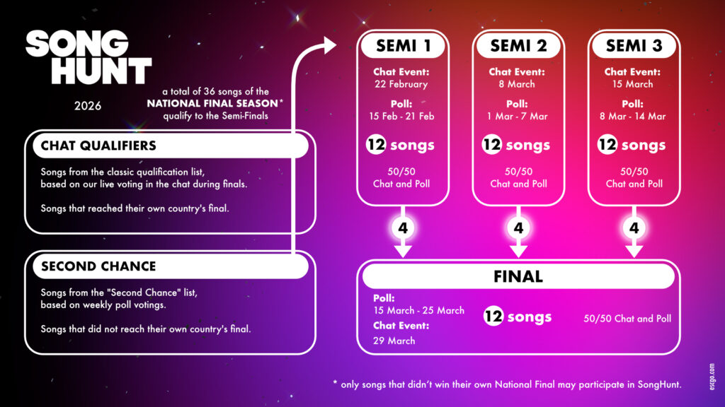 Don’t be too worried if this feels like too much information: The SongHunt fundamentals – voting in the public poll on each semi-final, and voting in the chat as part of the live result – remain as familiar as ever. And your participation and support will be appreciated as it has been for the last eleven years of SongHunt.